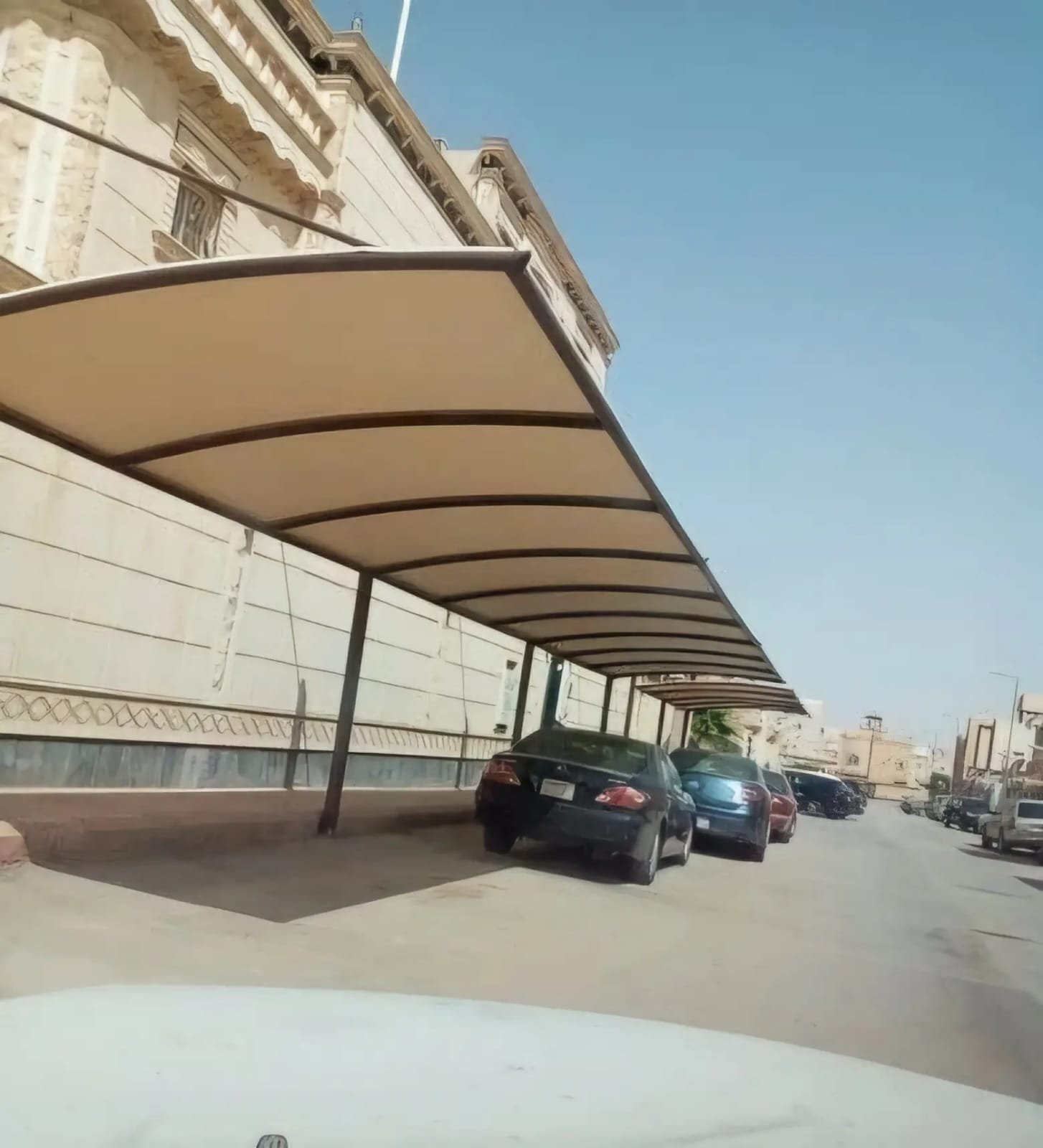 مظلات سيارات قماشية: تبدأ من 170 ريال للمتر المربع.